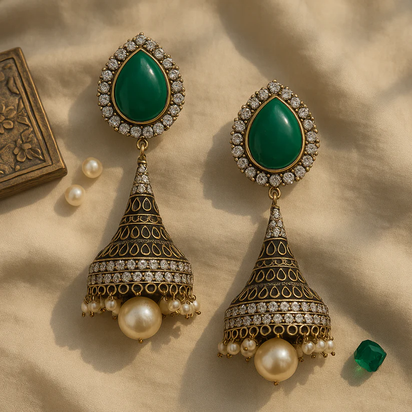 Sustainable jhumkas, often crafted using recycled metals and responsibly sourced stones, symbolize the perfect union of ethics and elegance. They remind us that beauty should never come at the cost of integrity.